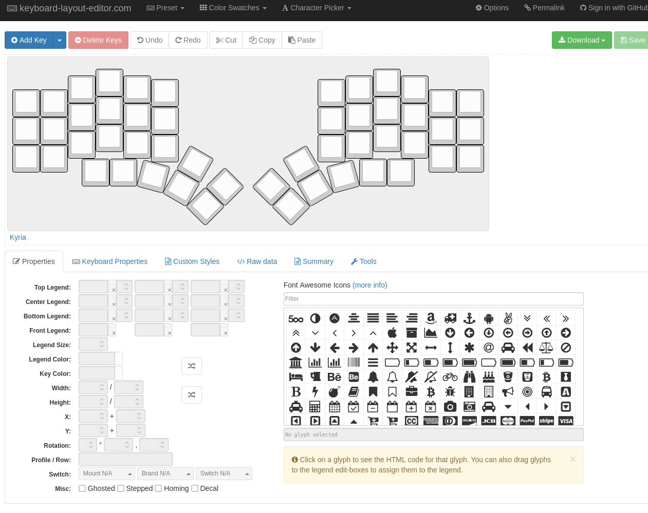 Il y a aussi un éditeur de layout (en lien sur) https://docs.splitkb.com/hc/en-us/articles/360010818820-Is-there-a-Keyboard-Layout-Editor-template-available-for-the-Kyria