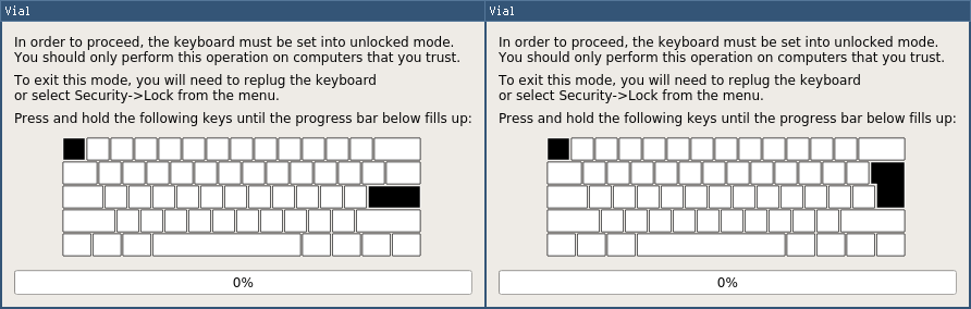 🔒 J'aime bien la protection pour éviter de pouvoir reconfigurer sans autorisation https://get.vial.today/docs/security.html avec une combinaison de touches pour "Unlock"