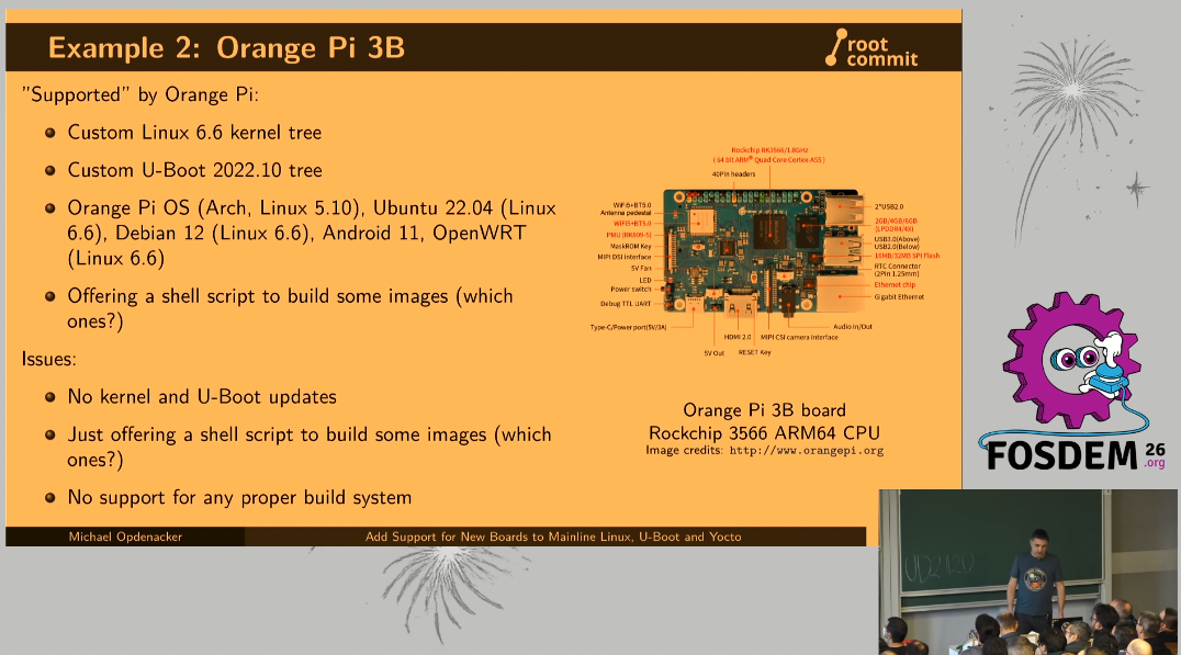 Une bonne dose de développement kernel, DTS et DTB, uboot, de SBC (Single Board Computer), de aarch64, UEFI, drivers de GPU, Vulkan, de yocto, d'initramfs, etc. La présentation de Collabora montre bien les enjeux politiques et de maintenance à long terme de faire remonter les développement kernel dans mainline et ne pas avoir du matériel pour lequel le support de linux reste figé sur ce qu'a fait le constructeur au moment de la commercialisation du produit.
